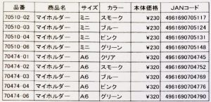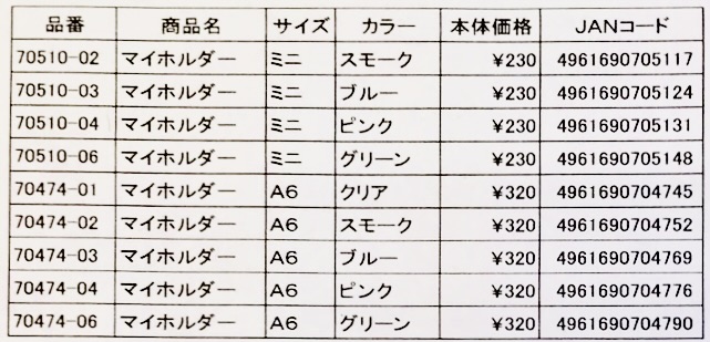 マイホルダー商品のミニサイズ、A6サイズにつきまして